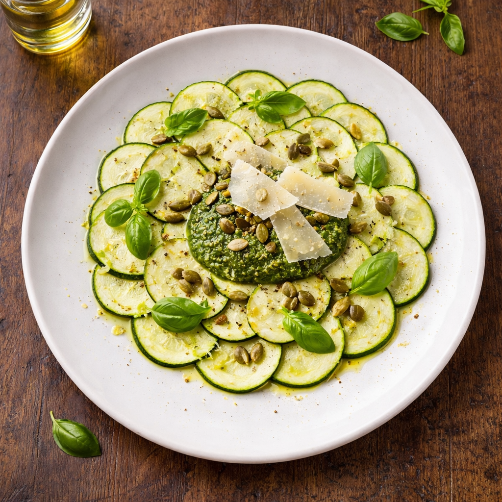 Carpaccio de courgettes et copeaux de parmesan AOP